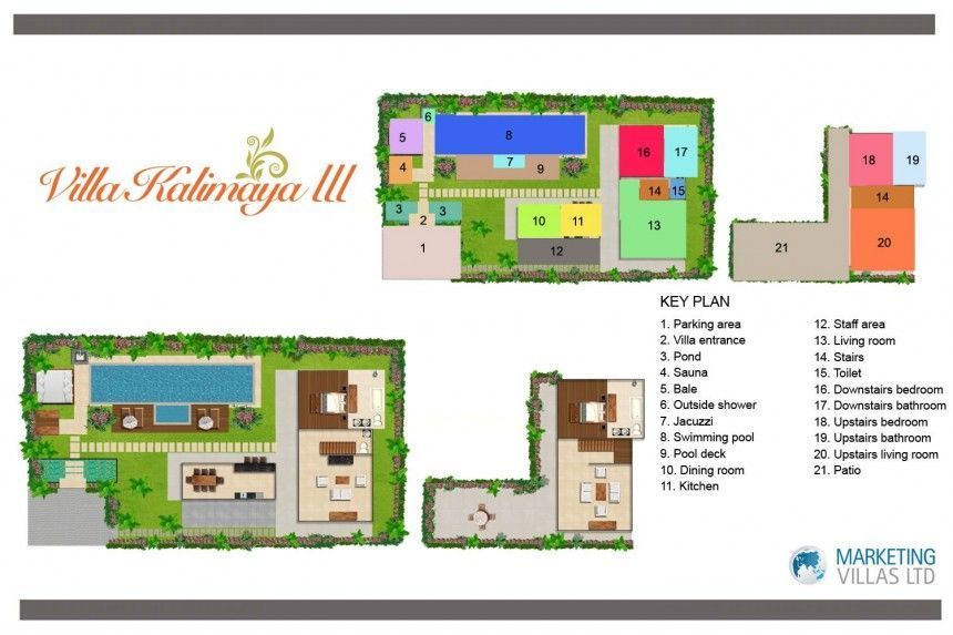 Two-bedroom Villa Kalimaya II lies adjacent to Villa Kalimaya III. The two villas are almost identical (with the exception of an additional bedroom at Kalimaya III), each with luxury ensuite bedrooms, private swimming pools, two spacious living rooms, roof garden terraces and fully fitted kitchens. The villas are beautifully furnished and come with high quality fittings and fixtures, including jacuzzis and FAR infrared saunas for your in-house spa treatments.